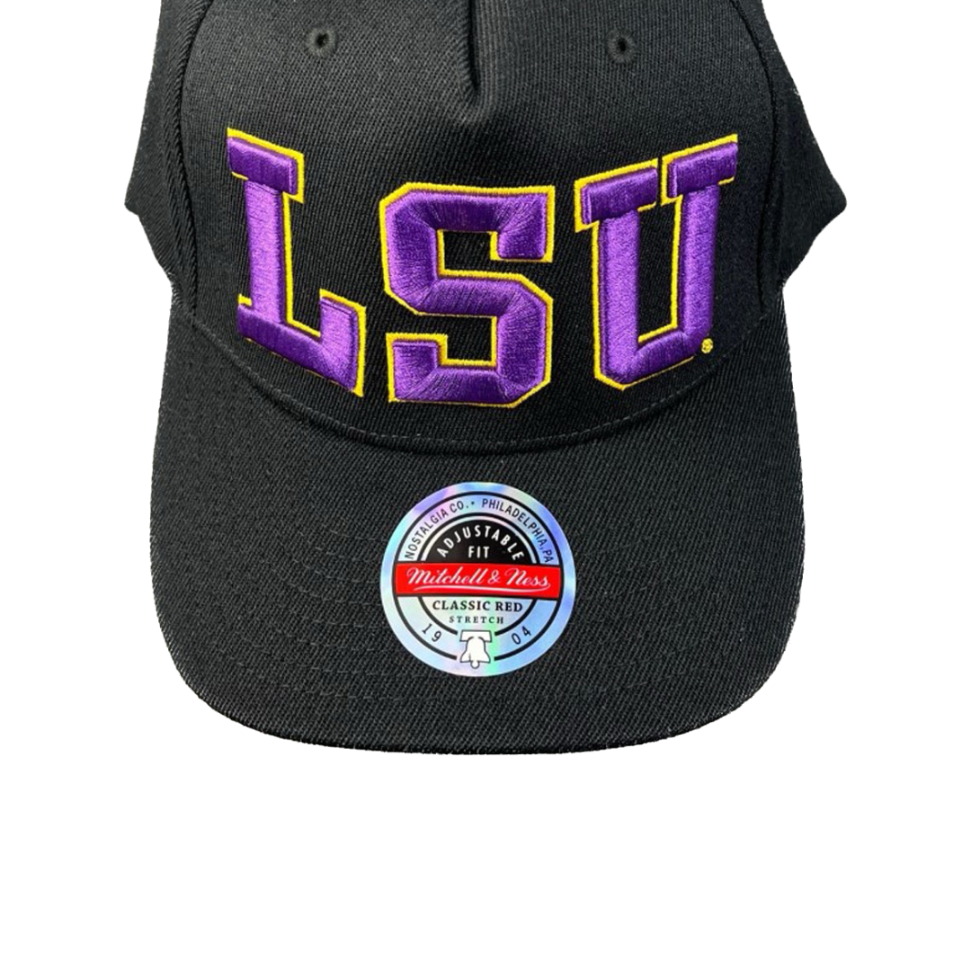 LSU Basketball Hat - Black LSU Logo Initial Stretch Snapback - Mitchell & Ness