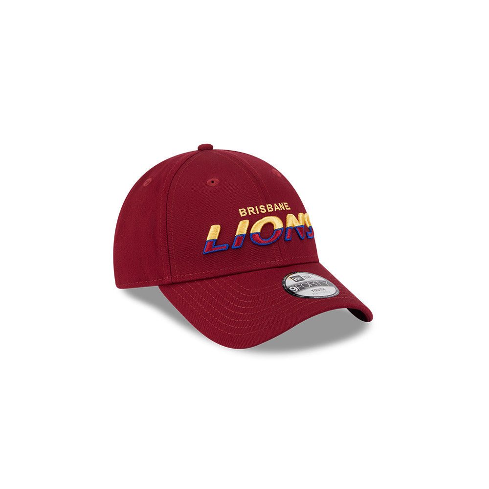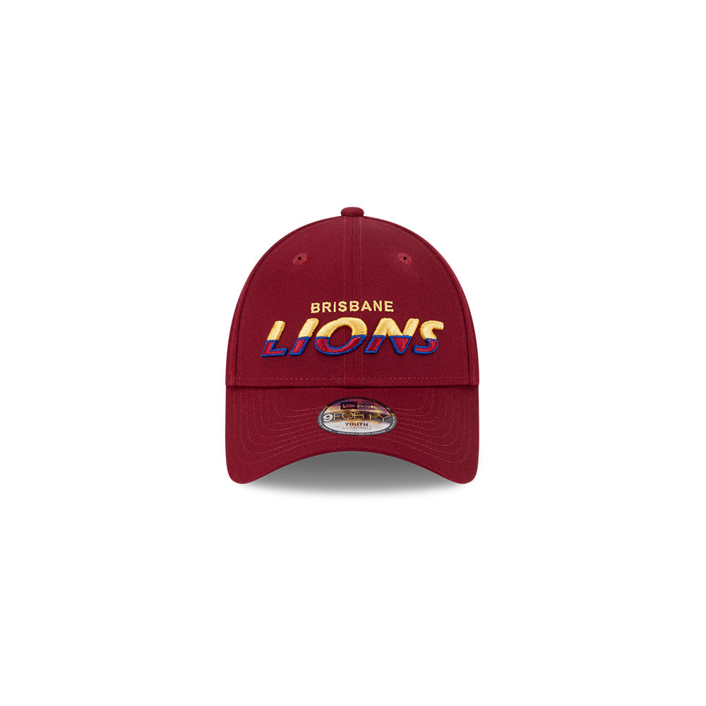 Brisbane Lions Youth Hat - AFL Split Script OTC 9Forty Kids Strapback Cap - New Era