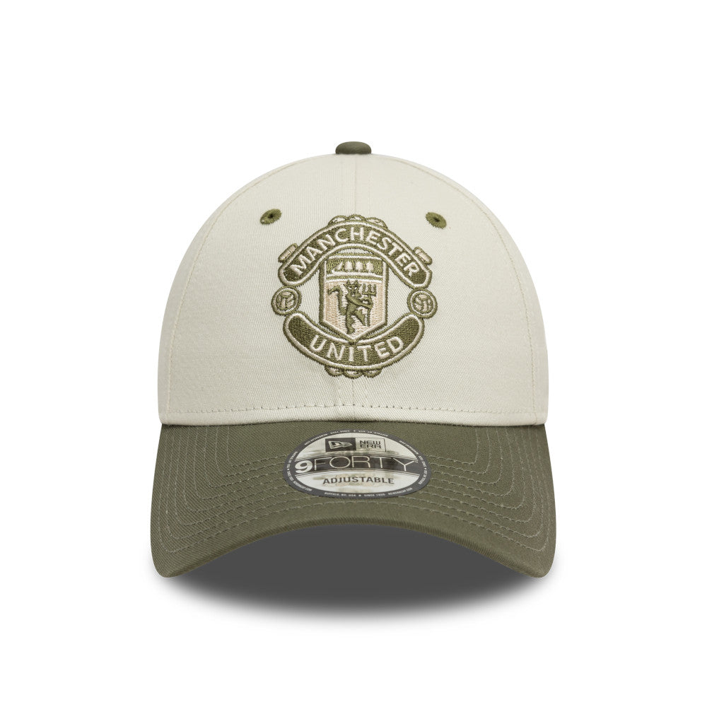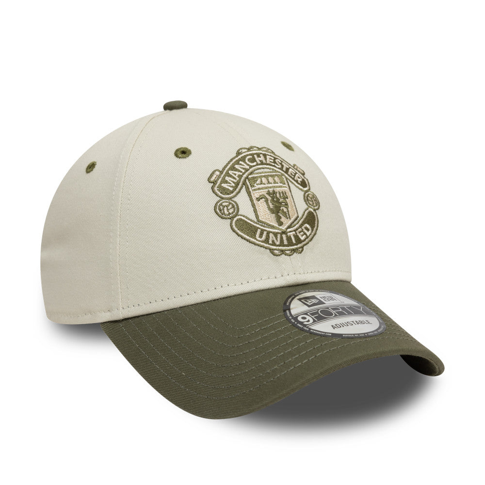Manchester United FC Hat - 2Tone Ivory Olive Contrast Visor EPL 9Forty Strapback Cap - New Era
