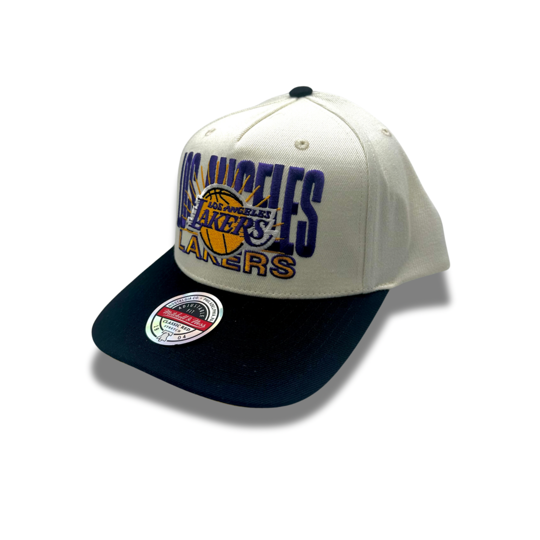 LA Lakers Hat - White Black 2-Tone Post Up MVP NBA Snapback Cap - Mitchell & Ness