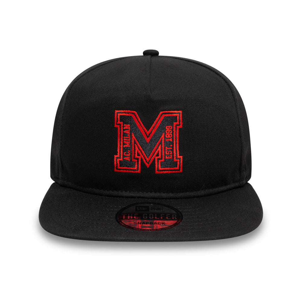AC Milan FC Hat - M Logo Black Serie A Golfer Snapback Cap - New Era