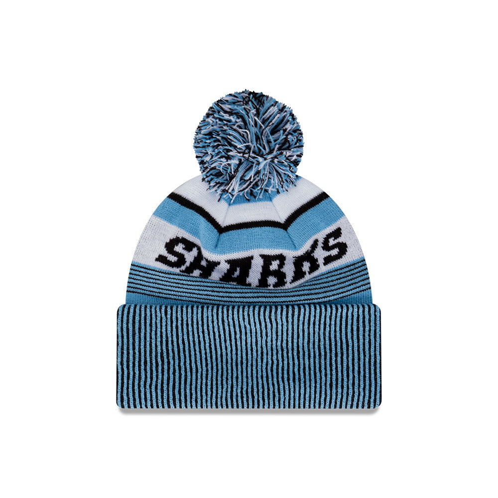 Cronulla-Sutherland Sharks Beanie - NRL Official Team Colour Speed Collection Pom Knit - New Era