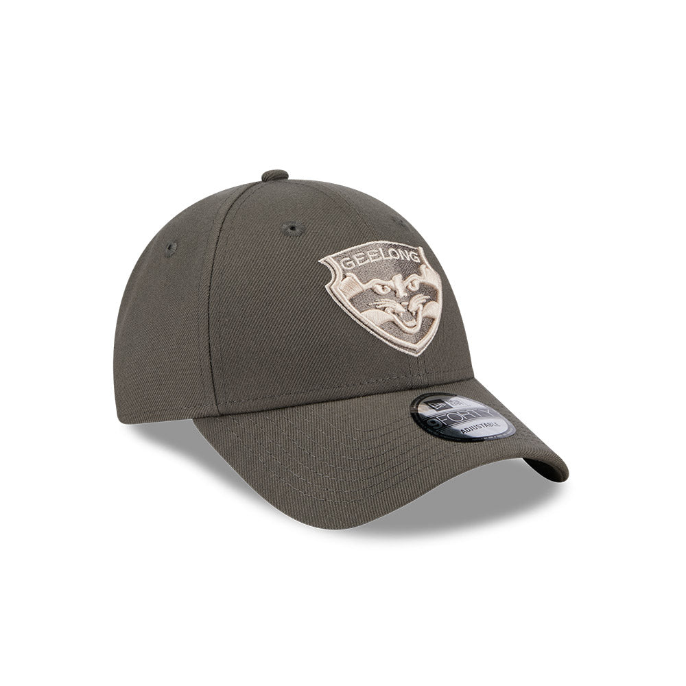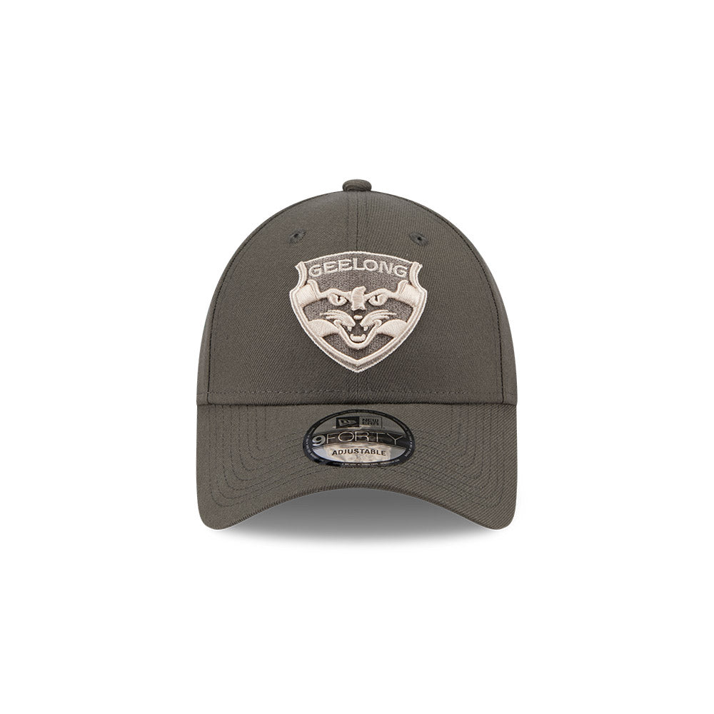 Geelong Cats Hat - AFL 2025 Dusty Charcoal Grey 9Forty Strapback Cap - New Era
