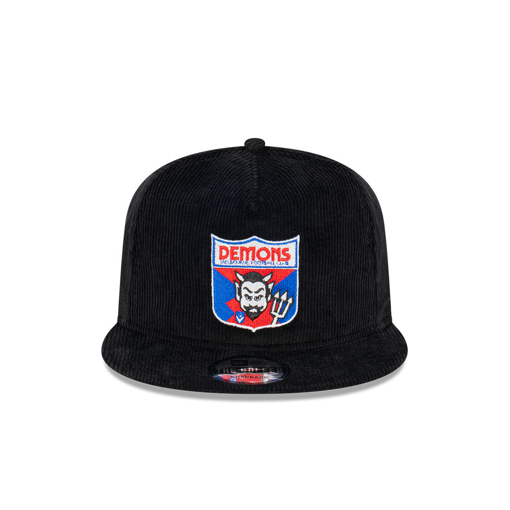 Melbourne Demons Hat - AFL Retro Black Corduroy The Golfer Snapback - New Era