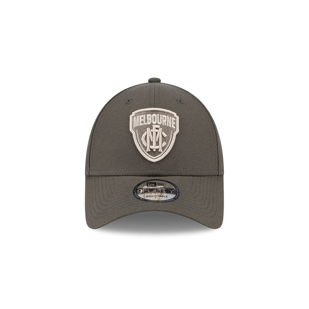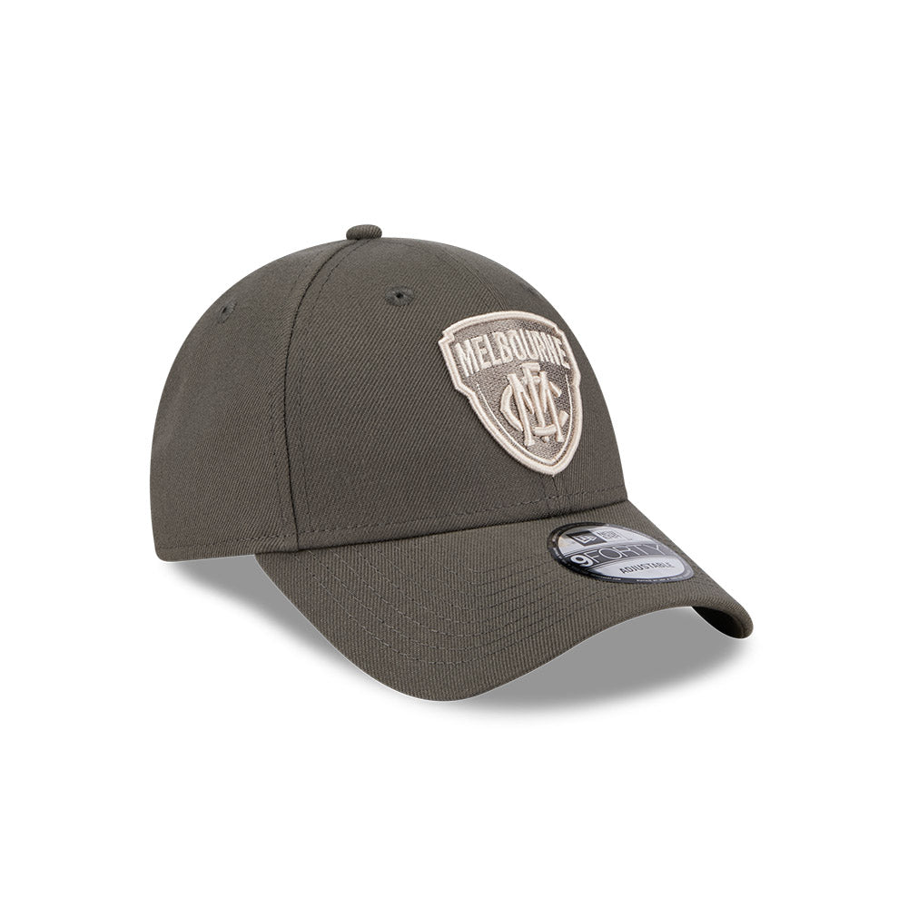 Melbourne Demons Hat - AFL 2025 Dusty Charcoal Grey 9Forty Strapback Cap - New Era