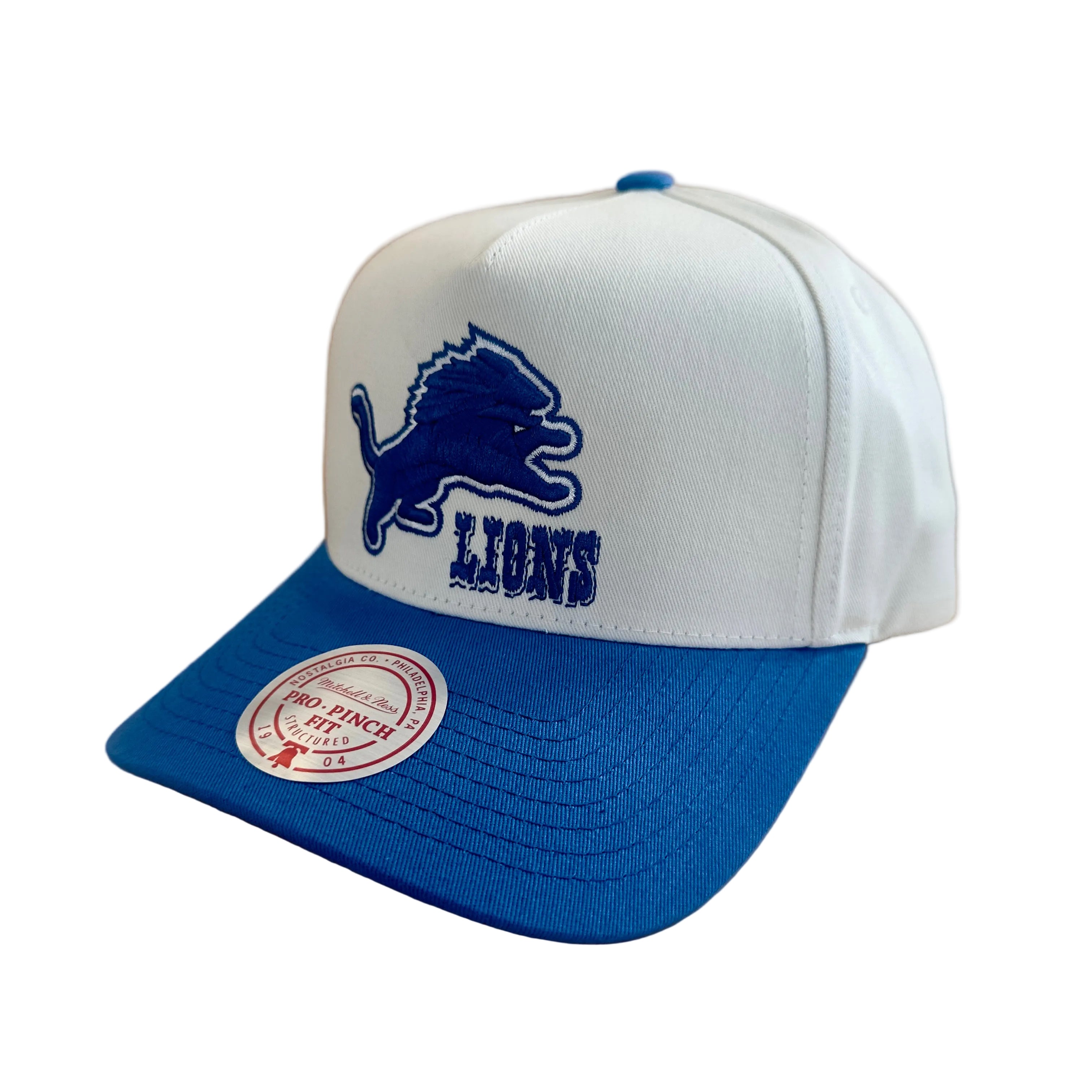 Detroit Lions Hat - 2Tone White Team Colour Pro Pinch NFL Snapback Cap - Mitchell & Ness