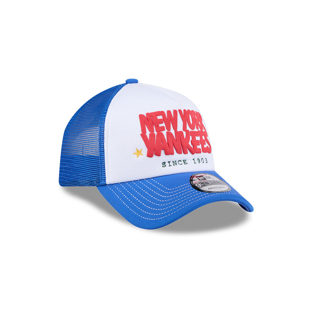 New York Yankees Hat - MLB Blue Script Foam Palette 9Forty A-Frame Trucker Snapback - New Era