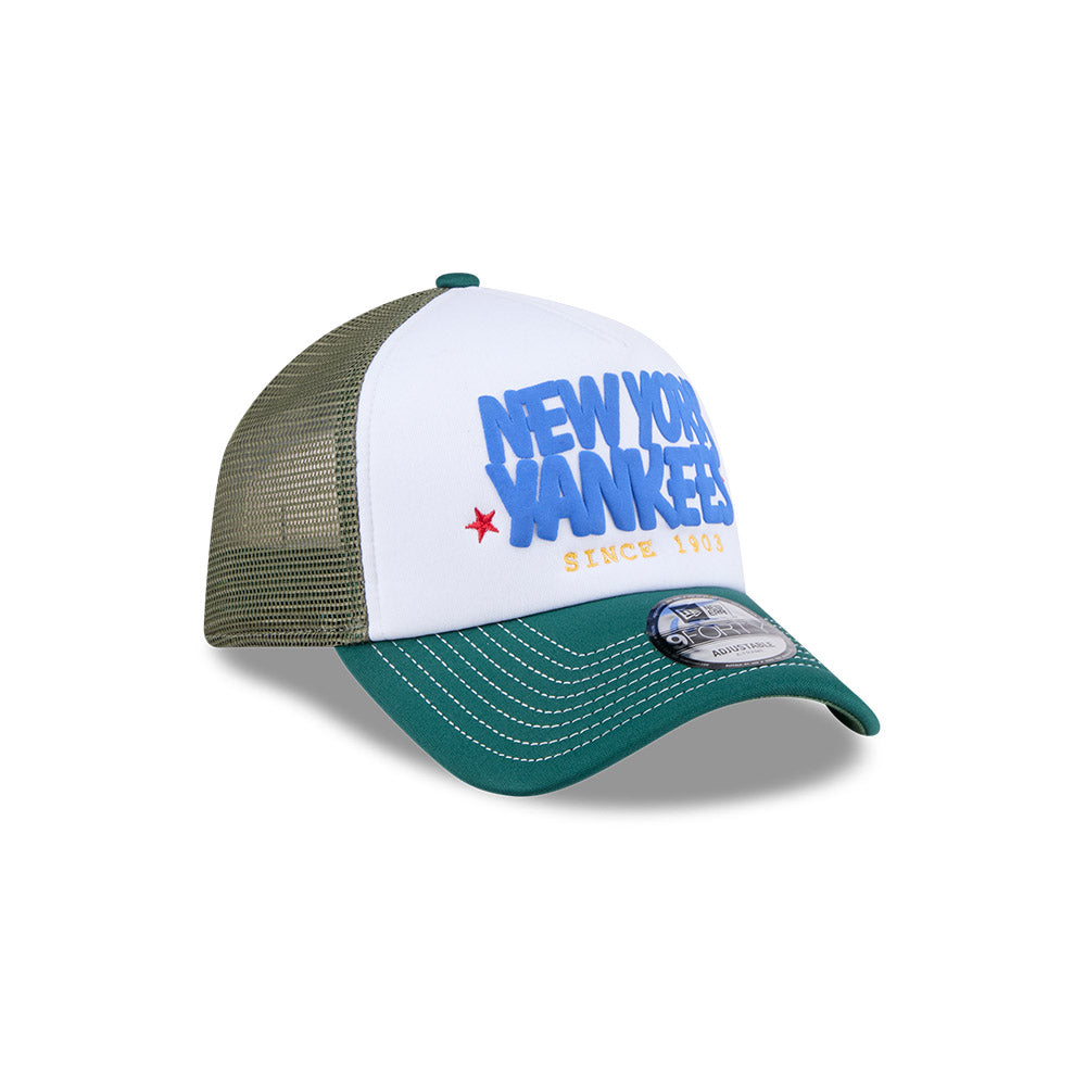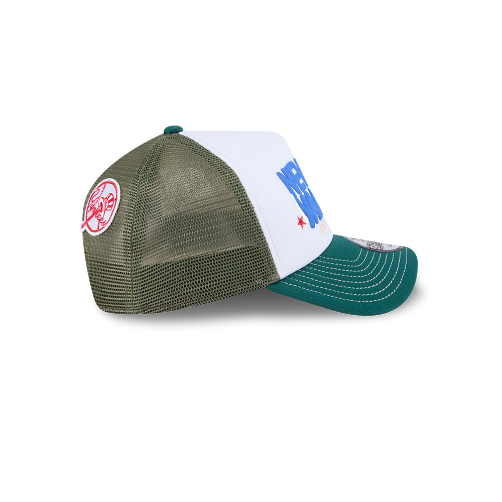 New York Yankees Hat - MLB Olive Green Script Foam Palette 9Forty A-Frame Trucker Snapback - New Era